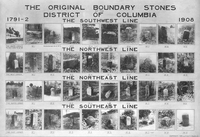 This picture is the: Enlarged 1908 composite photo by Ernest A. Shuster of the D.C. boundary stones and their sites